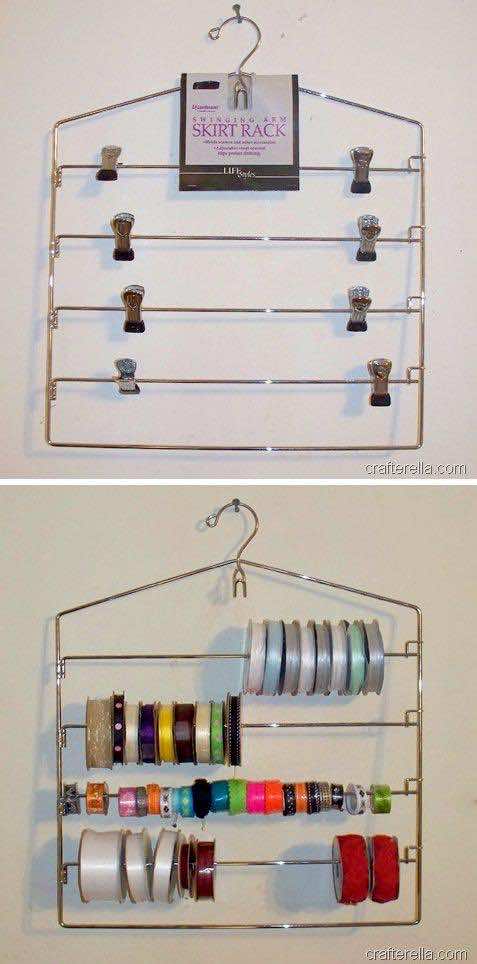 这是另一种储存缎带的方法——用金属衣架!按照给出的说明做,瞧!