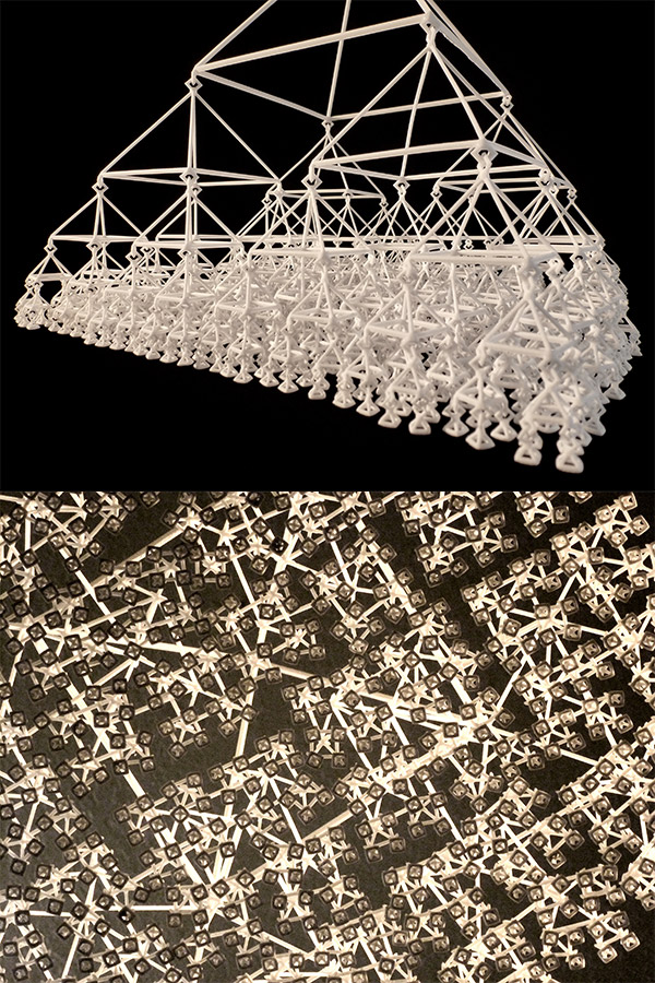 使用脚本可以设计出传统方法无法实现的创新想法,例如,1365件的设计,第四纪树(Level 6)。这些手机是迄今为止第一批完全3D打印的手机,使它们成为手机发明历史上的一个突破点。