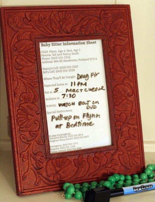 4.此可重复使用的保姆信息表将使您和保姆更容易。