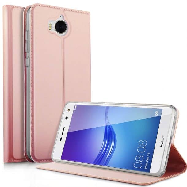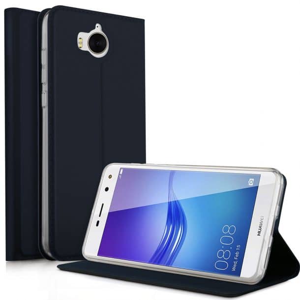 这是Kugi为荣耀7X专门制作的PU皮革翻盖盒。该单位支持支架功能,以支持您的手机当你在看视频、电影、演讲甚至阅读电子书时。TPU外壳覆盖所有角落,避免划伤你的手机。它是防水和防指纹的原始外观。这款手机有卡槽和口袋,不用皮夹就能装东西。磁性皮瓣保持它的闭合和保护。