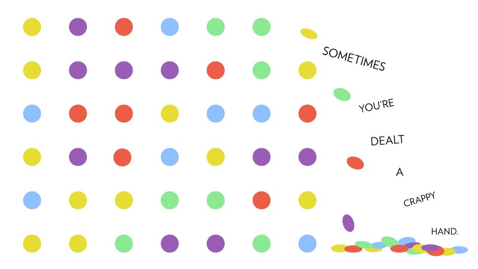 4·斯图尔特是一个作家,耶洗别想出了一个办法把人生经验融入流行的“点”游戏。例如;有时,一个正方形的一种颜色,你需要摆脱一些不同颜色的点。换句话说:为了解决一个问题,你可能需要解决不同的一分之一。