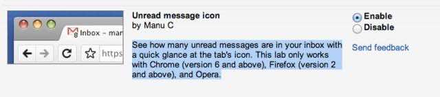 转到设置,单击“实验室”,然后向下滚动到“未读消息图标”。启用并保存设置,这将允许少量数字显示在您的Gmail选项卡上,因此您可以操作其他选项卡并了解您一眼有多少邮件。