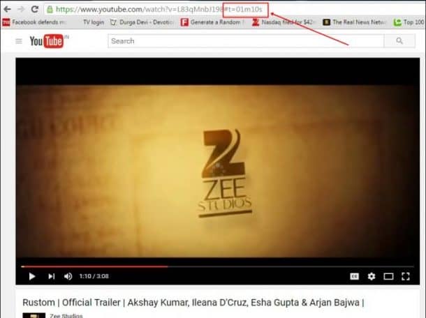 步骤2。在URL栏,在当前地址的末尾添加# t = 02 m10,并复制整个链接地址。