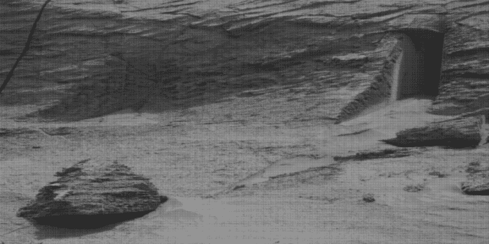 而水以前只有火星上生命的证据,许多人感到惊讶当好奇心罗孚获得了朦胧,黑白照片,几天前,出现了door-like蚀刻到岩石表面结构。