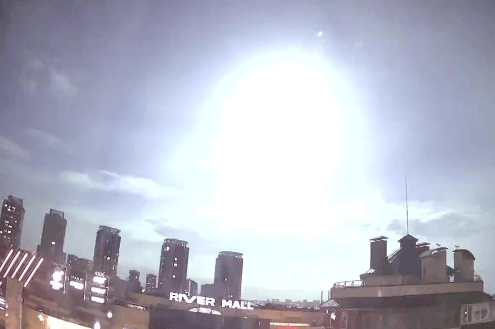 星期三晚上,夜空之上基辅被突如其来的强光,照亮了促使公众猜测所引起的。这一事件引起了普遍的困惑和兴奋的城市,已经习惯了俄罗斯的导弹袭击。