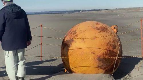 在日本海滩上发现的一个巨大的金属球体引发了一个谜题,官员和当地人对它的来源感到困惑。这个物体直径约4.9英尺,是一名跑步者在海滨城市滨松的恩修滨海滩发现的,并向警方报告了此事。