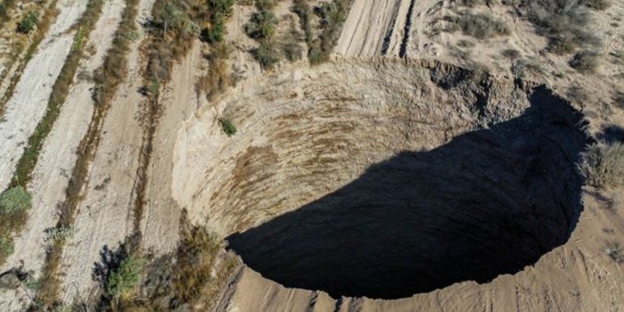 专家被要求下来检查洞,大约32米(104英尺)和两倍的深处,这是周末在圣地亚哥以北约800公里(近500英里)的地区出现的,国家地质和采矿服务(Sernageomin)在一份声明中说。