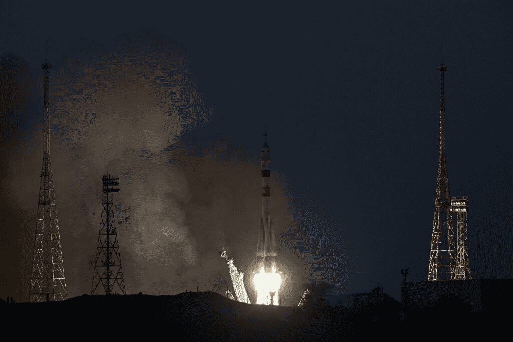 船员包括NASA的弗兰克·卢比奥,俄罗斯的谢尔盖Prokopyev和Dmitri Petelin 13.54 GMT Russia-leased拜科努尔航天发射基地发射的。
