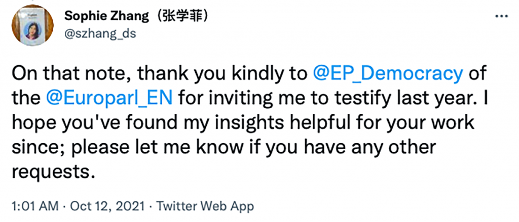 在接受美国有线电视新闻网(CNN)采访后的星期一,张发布了另一条推文,说:“如果国会希望我作证,我将履行我的公民职责,正如我在过去的半年中公开说的那样。”张在接受美国有线电视新闻网(CNN)的采访时说,弗朗西斯·霍根(Frances Haugen)在Facebook和Instagram上证明了儿童安全后,她受到了弗朗西斯·霍根(Frances Haugen)的积极支持的鼓舞。
