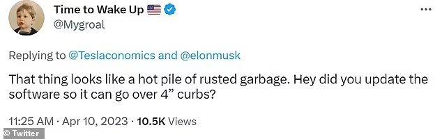 对马斯克来说,唯一可行的办法就是他宣布“开个玩笑!并发布了一款外观合理的卡车,这款卡车一直在秘密开发。否则,这将是一个巨大的失败。看起来像垃圾,”推特用户Hilson Valli发推文说。
