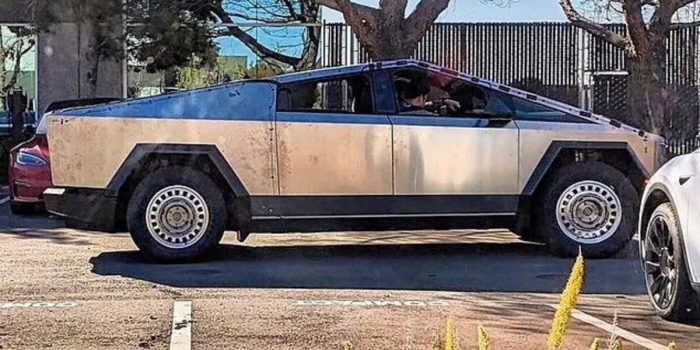 该车的图片显示,它停在弗里蒙特的一个停车场,车轮、前底盘和顶部的电线与埃隆·马斯克在2019年发布的那辆不同。