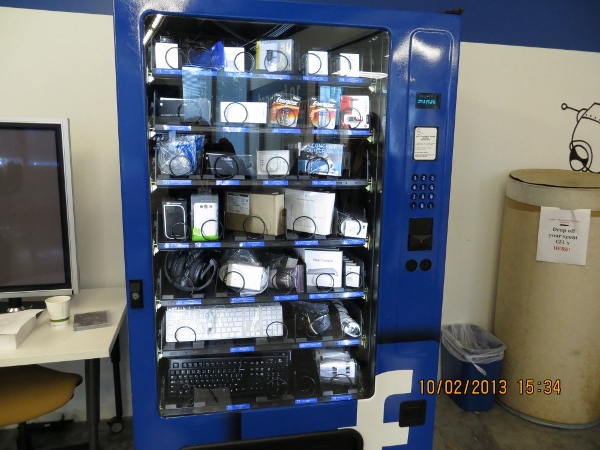 校园里有许多电子产品自动售货机,提供免费的电子产品。他们当然是免费的。然而,每件商品仍然有它们的价格。