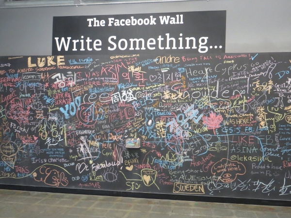 办公室里有一个巨大的“Facebook墙”,你可以在上面写下任何你想到的东西。