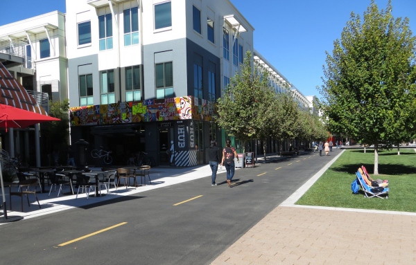 在校园里,它看起来像一个微型小镇。Facebook从迪士尼乐园聘请了两名顾问,让它看起来像一个真正的小镇。