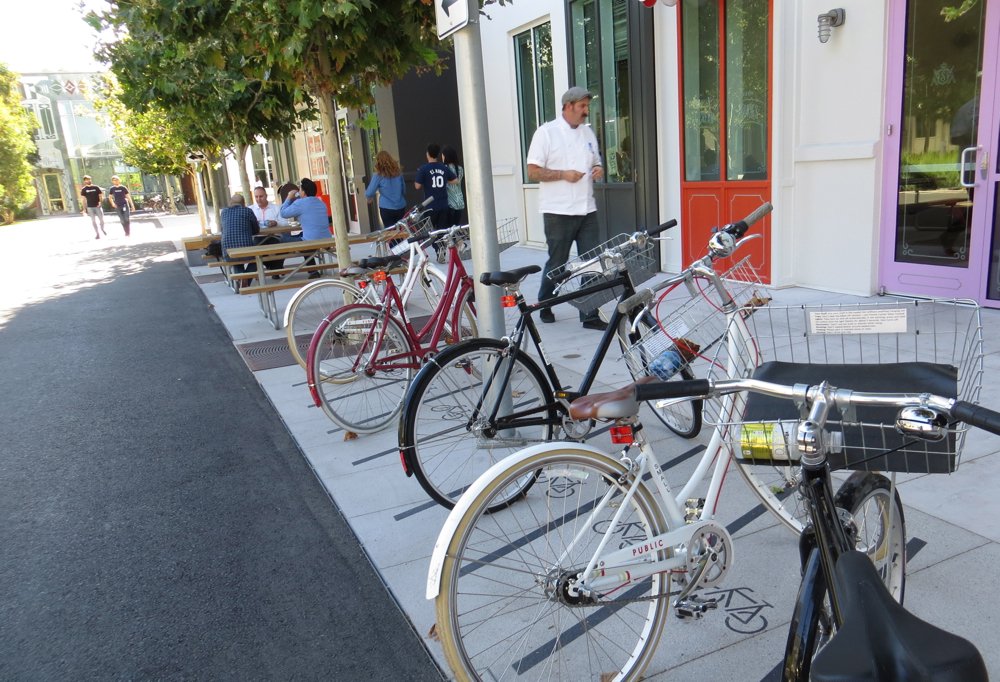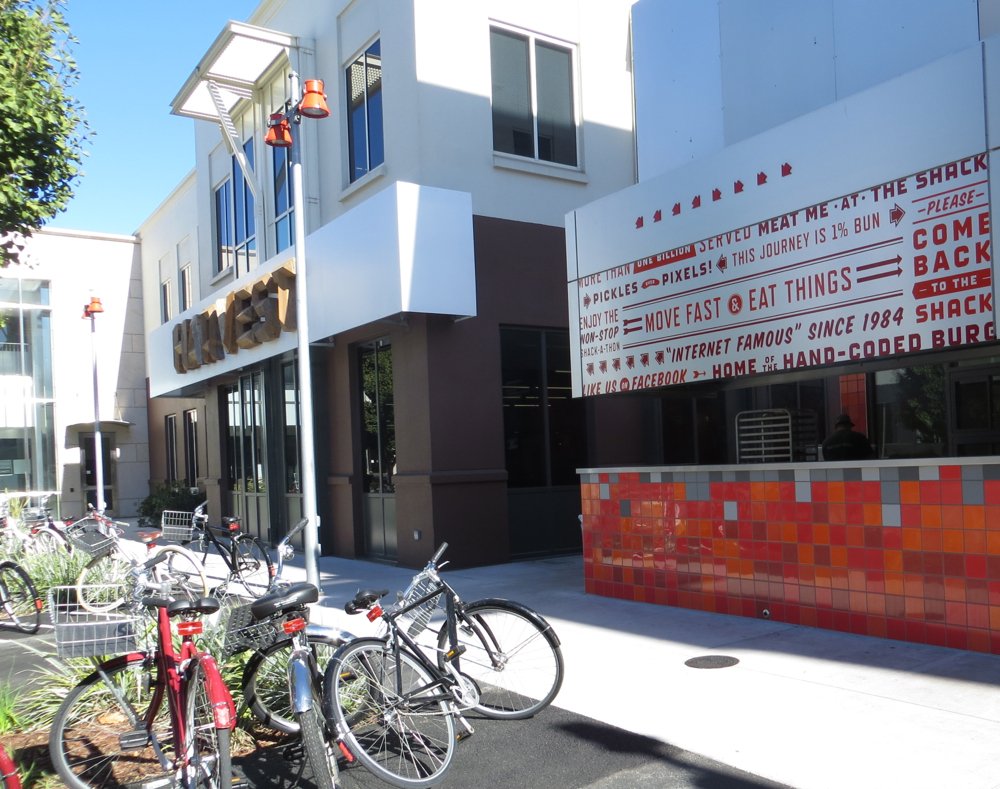 你可以骑自行车在校园里游览。Facebook为员工提供免费自行车,供他们在园区内漫游。