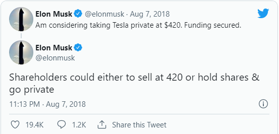 在马斯克在2018年发推文说他“有融资”以将特斯拉私有化后,该银行声称特斯拉违反了与股份持有的股票认股权证有关的合同。马斯克在《华尔街日报》上发表的关于当天诉讼的陈述引发了低评级的弹幕。