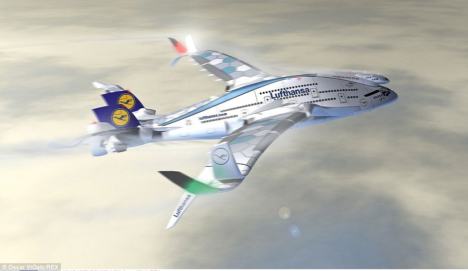 太阳能电池板也被纳入设计,从而使飞机产生的电力,它在飞行中消耗。根据Viñals先生的说法,飞机应该完全不产生碳。电池中储存的多余能量将在飞机着陆后通过装有电力储存装置的特殊卡车进行回收。驾驶舱位于第二层甲板上,包括一间办公室、几张床和一间工作室。Viñals先生进一步补充说,飞机将由轻质材料制成,如铝、钛、碳纤维和陶瓷。
