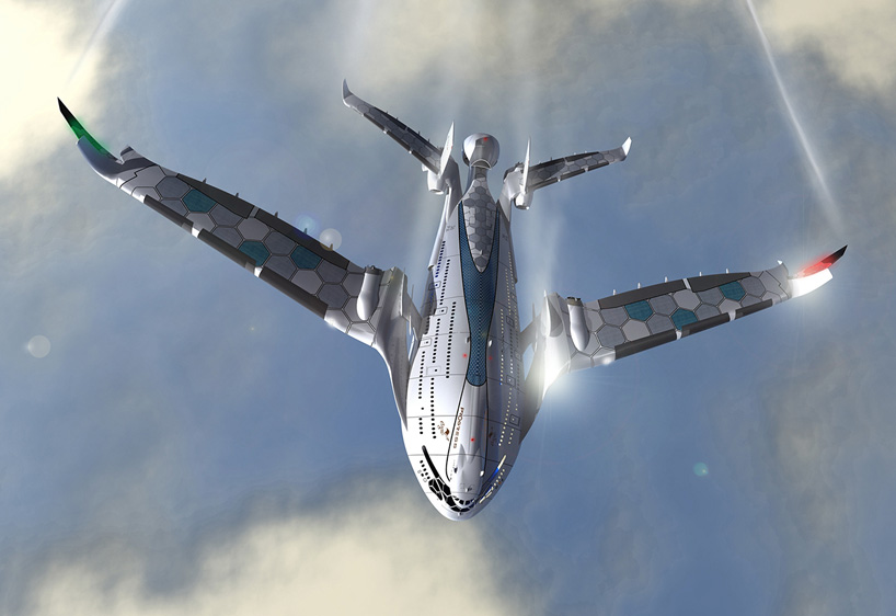该设计展示了6台氢燃料发动机为飞机提供动力。为了达到起飞所需的推力,人们必须驾驶位于后部的中央螺旋式发动机。中央发动机与五个超级导电发动机的组装协同工作,一旦飞机达到最佳高度,中央发动机就会关闭,并开始从流经中央发动机的空气中发电。
