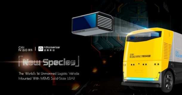 这款送货机器人是同类产品中的第一款,也是世界上第一款固态激光雷达无人物流车,它通过前面和后面的两个RS-LIDAR-M1Pres创造了强大的3D感知。