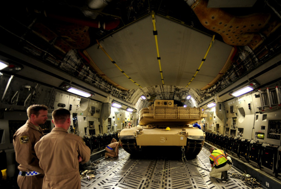 相比架波音c - 17载荷:170900磅(77519公斤)