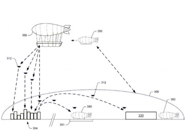 该想法是通过使用空中部署来增加目前有限的无人机航程,使其覆盖更广泛的投递区域。飞艇式的仓库也可以漂浮在空中,这样亚马逊就可以轻松地把仓库转移到消费者需求上升的任何地方。例如,专利说明如果附近的体育场有体育比赛,飞艇可以被移到那里,让球迷可以在现场购买球队的商品或零食。