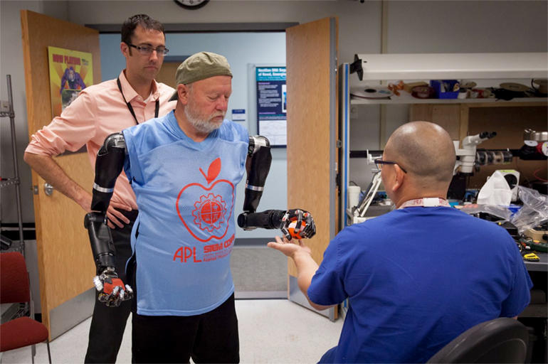 莱斯·鲍(Les Baugh)在大约40年前发生的一次电气事故中失去了手臂。我们都可以很好地想象40年后,他能够通过自己的思想控制假肢时必须感到多么高兴。这一惊人的壮举是在今年夏天在约翰·霍普金斯大学应用物理实验室进行的。莱斯成为世界上第一个佩戴并同时控制两个实验室模块化假肢(MPL)的双边肩部截肢者。