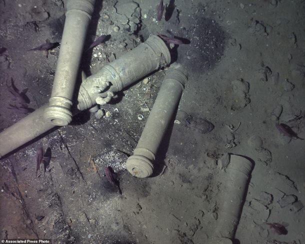 “残骸部分被沉积物覆盖,但通过低海拔任务的相机图像,我们能够在残骸中看到新的细节,分辨率足够好,可以分辨出大炮上的装饰雕刻。”WHOI工程师和探险队长迈克·珀塞尔说。