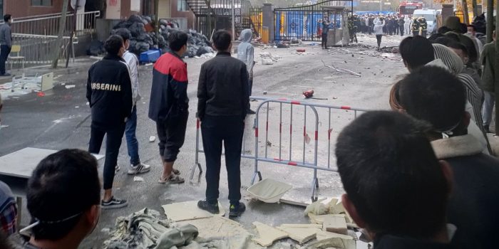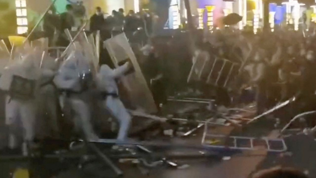 工人离开了在郑州工业园区,中部的河南省的首都,由于上个月Covid担忧。来吸引工人返回奖金了。然而,40名工人袭击管理和保安周一晚上在纠纷未付工资。据当地媒体消息,两个警卫受伤在警察到来之前。