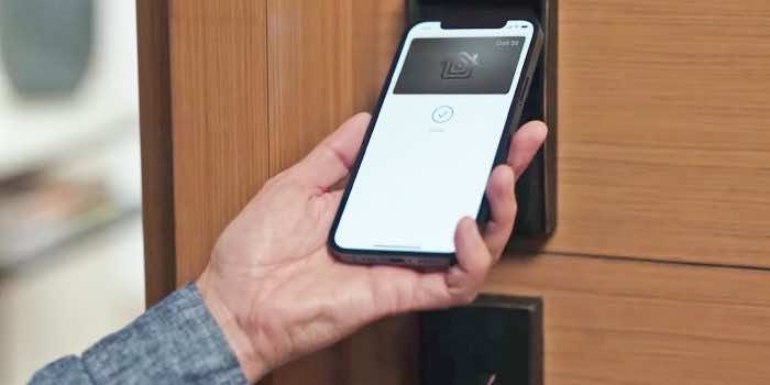 Level Lock+由Level Home生产,安装在门上。一旦修好,它就可以用苹果home Key轻敲一下,解锁和重新锁定房屋。该功能在苹果软件中使用了近场通信和安全令牌。用户可以把钥匙发短信给朋友,也可以自动锁门。