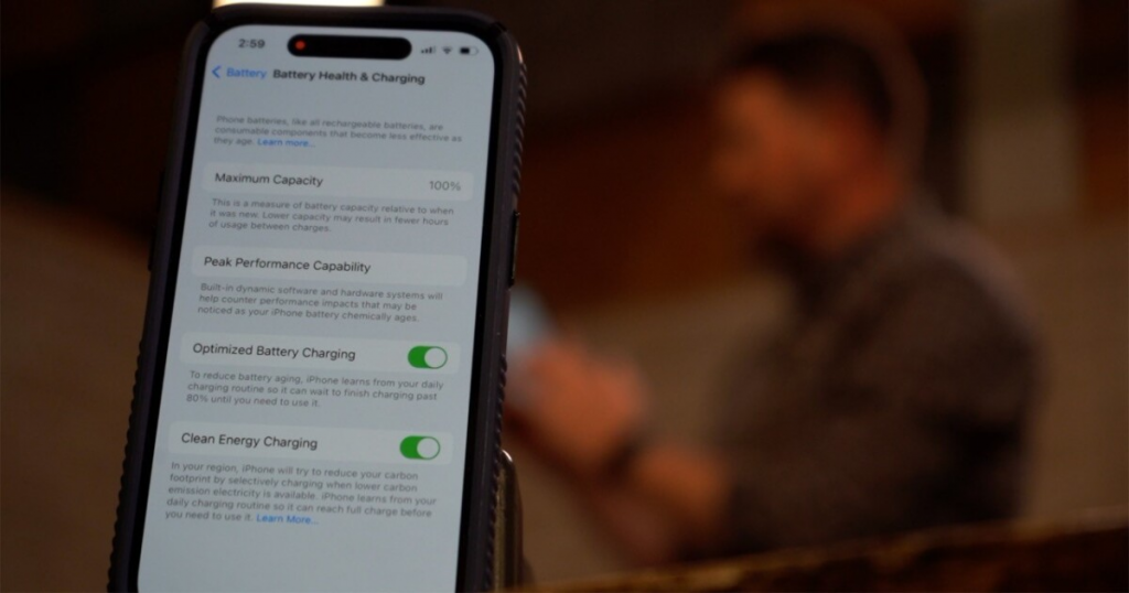 如果你不想使用最佳充电时间功能,你可以通过在设置应用程序中打开iPhone的电池设置来关闭它。然后,寻找电池健康和充电部分,并将清洁能源充电切换为“关闭”。