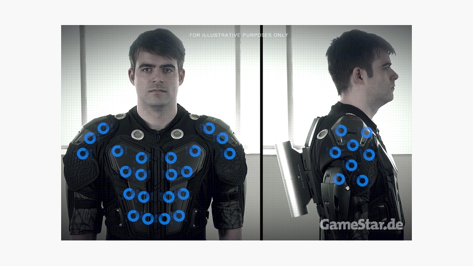 你可以通过购买一个基因签名带进一步个性化你的ARAIG,它的名字与你的DNA或基因无关,而是一个徽章,你可以附加到你的衣服上显示你想要它读什么。解码器可以帮助你连接到你的游戏站,无论是PC还是主机。解码器接收游戏站的数据,然后将数据转发给外骨骼。外骨骼是最重要的组件,然后将这些信号转换为用户的实时感觉。