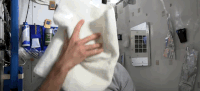 经过累人的工作,宇航员退休到睡袋,睡6小时。显然,在零重力中睡觉很奇怪,有些不可能!