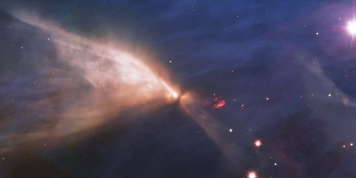 这个过程产生了短暂的,明亮的雾化斑,称为Herbig-Haro对象。这被称为HH 909A。仔细观察的天文学家可以观察到只有几年的时间范围内的Herbig-Haro物体。