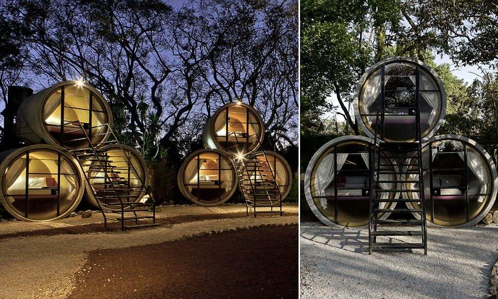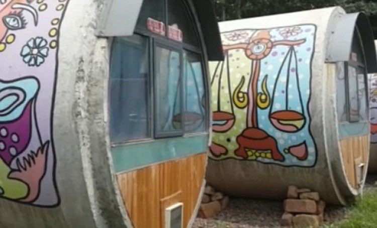 他设法获得了几米长的再生混凝土管道,并将其视为一个机会,他将管道切割成15个单独的结构。这些建筑都是为两人住宿而设计的,配有双人床、洗手间、隔音和空调。然而,要小心;没有意见享受从这个管道!外观上有一些独特而伟大的街头艺术,使酒店看起来更有趣,而不是沉闷的混凝土颜色。