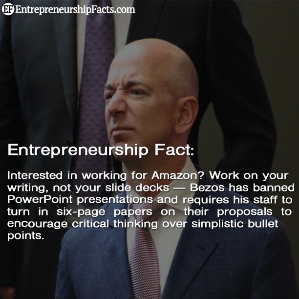 消息 杰夫·贝佐斯(Jeff Bezos)在亚马逊会议上禁止Powerpoint。这是他喜欢的 阿里·瓦卡(Ali Vaqar) 2018年4月28日 0 杰夫·贝佐斯(Jeff Bezos)是亚马逊创始人兼首席执行官。在2018年的年度信中,他重复了PowerPoint演示的规则...