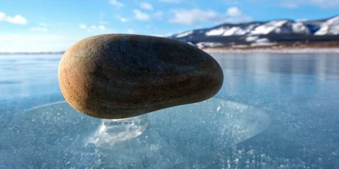 神秘的现象发生在贝卡尔湖表面上的扁平禅宗石冻结时发生。然后,阳光将它们加热到冰下面开始融化的点。但是,这也有歧义,仿佛只有热量才能发挥作用来形成这些作用,其余的冰也会在旁边融化,不会让石头漂浮在冰的表面上方。
