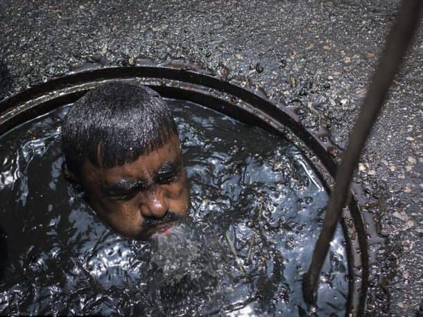 看他是怎么把污水从嘴里吐出来的。污水产生的有毒气体本身就足以致命。由于污水的有毒烟雾,发生了多起公用设施井工人和清洁工死亡的事件。然而,工人们没有权利获得足够的安全设备、口罩或连体衣。目前还没有向他们提供所需设施的计划。《每日邮报》报道,