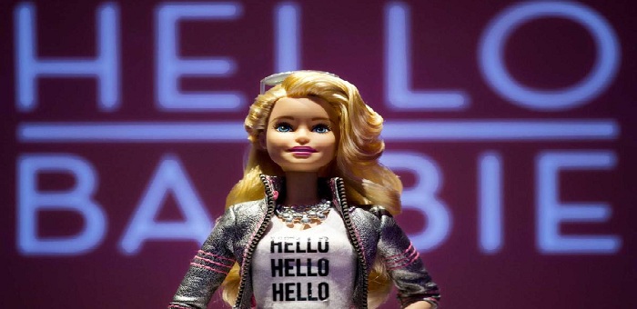 的日子一去不复返了女孩用来自己跟芭比娃娃和应答。启用一个新的wi - fi芭比叫“你好芭比”正在互联网风暴后显示本周美泰。
