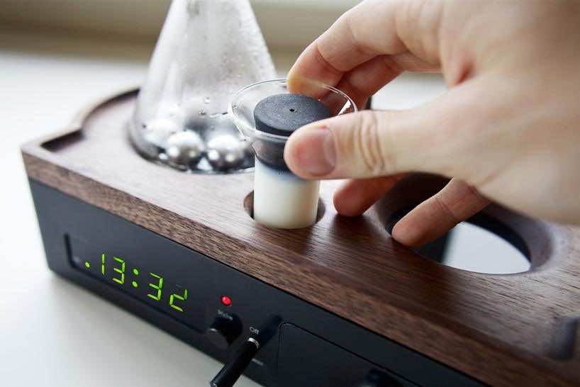 Barisiuer是一个闹钟,经过精心设计,能够通过为您提供一杯咖啡,从而启动您的一天,这些咖啡在您的床上刚煮过。用这个惊人的闹钟的创建者的话说;‘它通过不锈钢滚珠轴承的微妙运动使用户进入一天,这些钢滚珠轴承通过诱导加热沸腾,并伴随着新鲜酿造的咖啡的气味。’