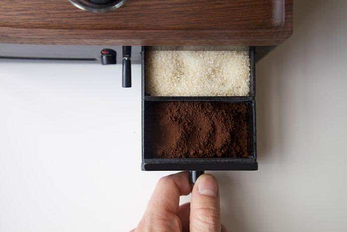 Barisiuer配备了一个抽屉舱,该抽屉室旨在将咖啡豆和糖以及一台牛奶或两只牛奶的管子一起存放。整个集会可以在前一天晚上填充。雷努夫(Renouf)为您提供了将信号发送给您的“身体和介意是时候放松和放松的时候”的仪式的名称。另一方面,我们对唤醒咖啡的甜味更感兴趣。