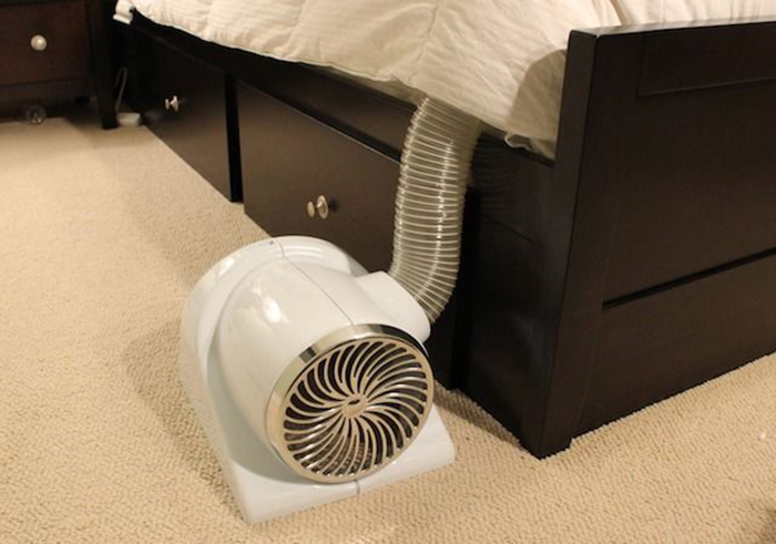 马克Aramli发明背后的男人也是ex-NASA太空服工程师。他创造了Bedjet加热器/风机单元的主要单位,可以把床下的地板上,连同一个塑料软管,热或室温空气之间的床单。用户可以通过两种方式控制Bedjet,通过射频远程或在他们的智能手机上安装一个简单的应用程序。持有人在床垫下有助于保持软管到位而flat-angled空气喷嘴分在正确的方向上。