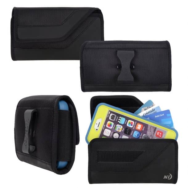 这个封面盒由纽约c是由耐用的尼龙材料制造,并在外观上缝合,以提供优雅和完美的外观。它有下推式皮带夹和皮带环,以增加安全性,还可以在里面装信用卡和现金。柔软的内部织物保护你的手机屏幕免受划伤和擦伤。这是一个很好的方法来保证你的手机安全,并携带所有你需要的额外物品。