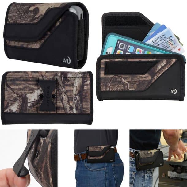 这是一个重型,水平货物钱包案件由优质尼龙材料制成。超强的帆布保护你的手机免受跌落和冲击的影响。后面有一个夹子,当你走动时,你可以把它夹在腰带上。还有一些空间可以放额外的配件,比如你的卡片或重要的纸条。