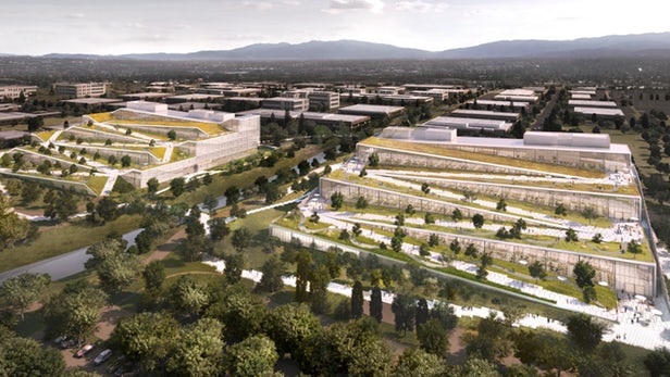 这个校园计划位于加州森尼维尔,这次BIG不必与Heatherwick工作室合作,因为它必须在之前的两个项目中进行合作,而是自己处理。新项目包括两栋绿色屋顶建筑和长长的倾斜露台。