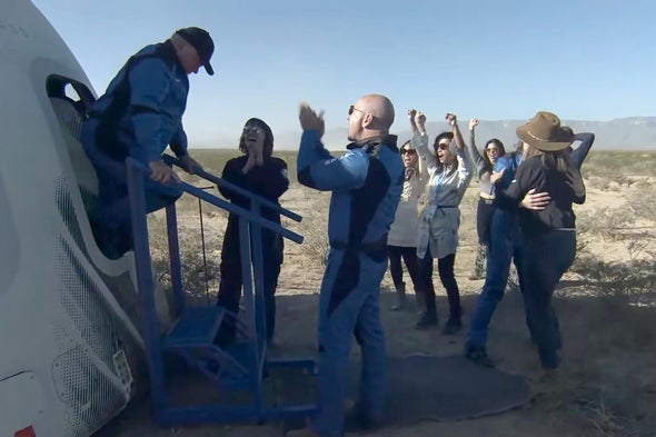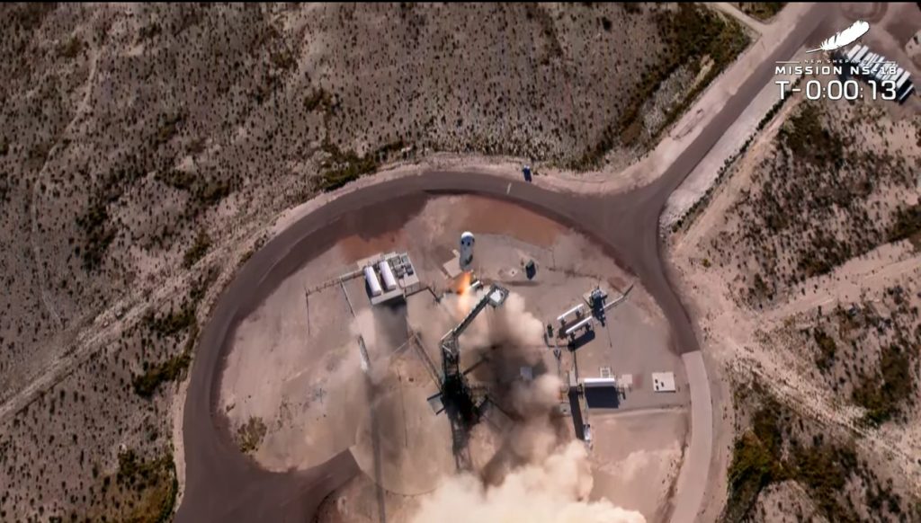 大约在美国东部时间上午10:50,蓝色原产地在德克萨斯州西部的私人设施发射了火箭,该火箭通过了Kármán线(国际公认的太空边界)。机组人员在这段时间经历了短暂的失重时期。大约11分钟后,胶囊使用降落伞在发射设施中独立着陆。胶囊还自主降落,并利用一组降落伞返回德克萨斯州沙漠。
