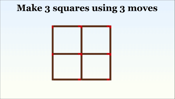 这是一个牙签拼图,最近在网上流传。它很古老,但不是每个人都看过并尝试过所有的东西,对吗?用这12根牙签,它们是4个正方形,用3步就把它们变成3个正方形。