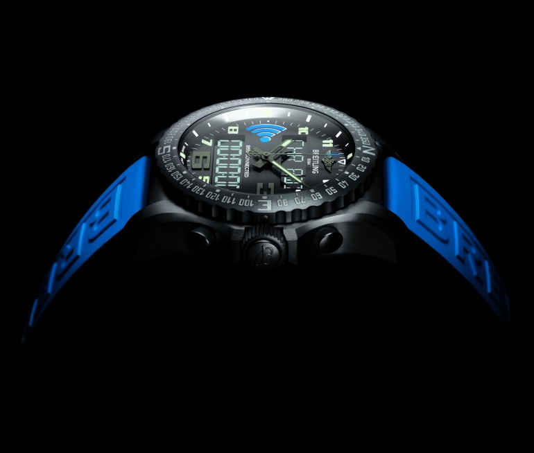 B55在美学上具有美丽的超明亮背光。当钟表倾斜至35度角时,LED显示光。B55看起来很像英百列紧急情况,具有相同笨重的线条和“超技术外观”,以及在卫生间蓝宝石盒周围的双向指南针圈,并带有黑色碳涂层。涂层与表盘上的无线连接徽标引起的一般蓝色和黑色主题,并延伸到橡胶表带。