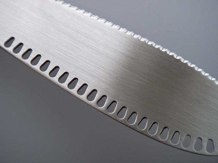 这把刀的独特性在于巧妙的设计以及它如何无缝地解决了与一块冷黄油一起工作的问题。这项创新来自DM计划,并在许多原型之后被最终确定。该设计是基于厨师给团队提供的小费。经过一连串的刨丝器之后,使用冷黄油工作更容易。因此,刨丝器被内置在刀上。位于刀的未交流边缘上的孔使用户可以在刀片上制作薄的黄油丝带,然后翻转刀,以开始黄油过程。
