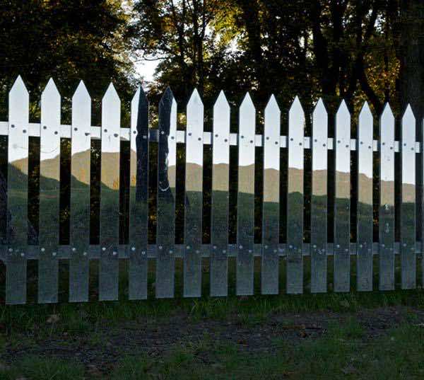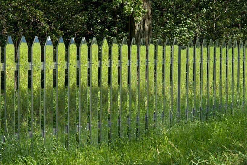 开头段落没有很多意义吗?简而言之,Shotz喜欢创建与环境融合在一起的东西。例如;该篱笆反映了周围的内容,因此在环境中似乎是看不见的或融合的。纠察栅栏是完全用镜子制成的,非常完美地混合,您需要非常接近以勾勒出轮廓。
