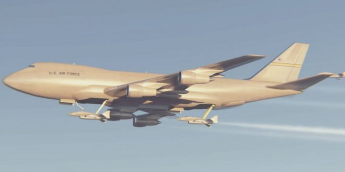 747是一个明确的选择,到目前为止,它已经证明自己是一种非常能干的客机,航天飞机运输机和货机。波音公司希望改变这些巨型飞机的设计,将战斗机置于机身内,并从专门设计的吊臂部署系统中释放出来。飞机也可以在半空中加油,然后通过飞机后部的一个小吊架取回,使用一种特殊的“充气滑橇”着陆。